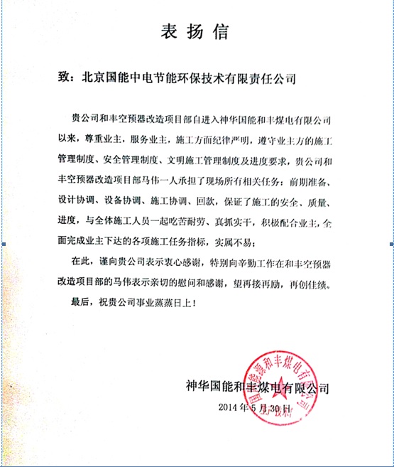 當(dāng)前位置: 國能中電公司動態(tài)> 和豐空預(yù)器EPC改造項目搶工期保質(zhì)量贏業(yè)主贊譽